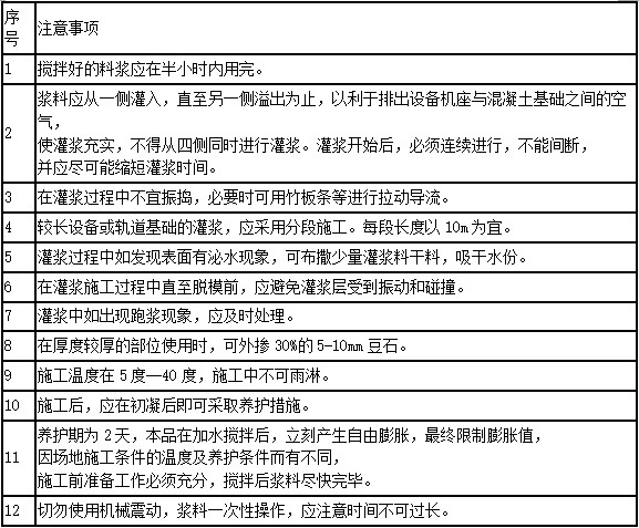 5、微膨脹、補償收縮;可保證設(shè)備與基礎(chǔ)緊密接觸。